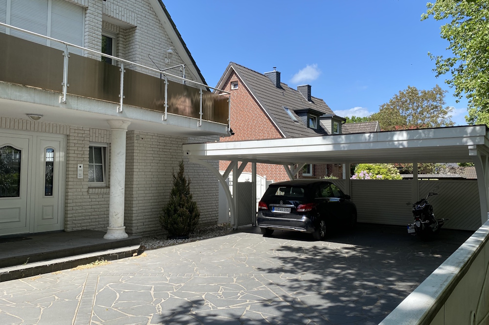 – Carport mit zwei Stellplätzen plus weitere drei Stellplätze