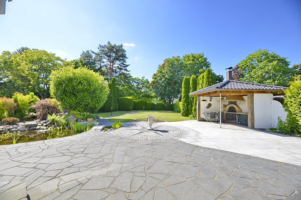– Gut eingewachsener, großzügiger Garten mit Gartenhaus und Grillplatz