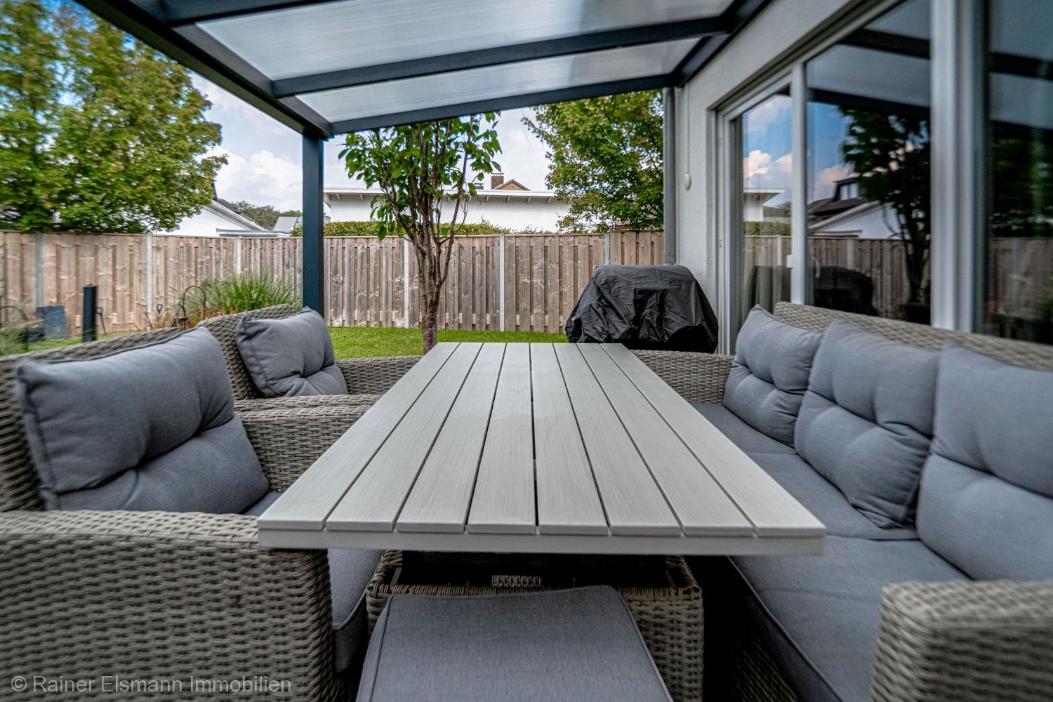 – Offener Wohn-/Essbereich mit Blick in den Garten