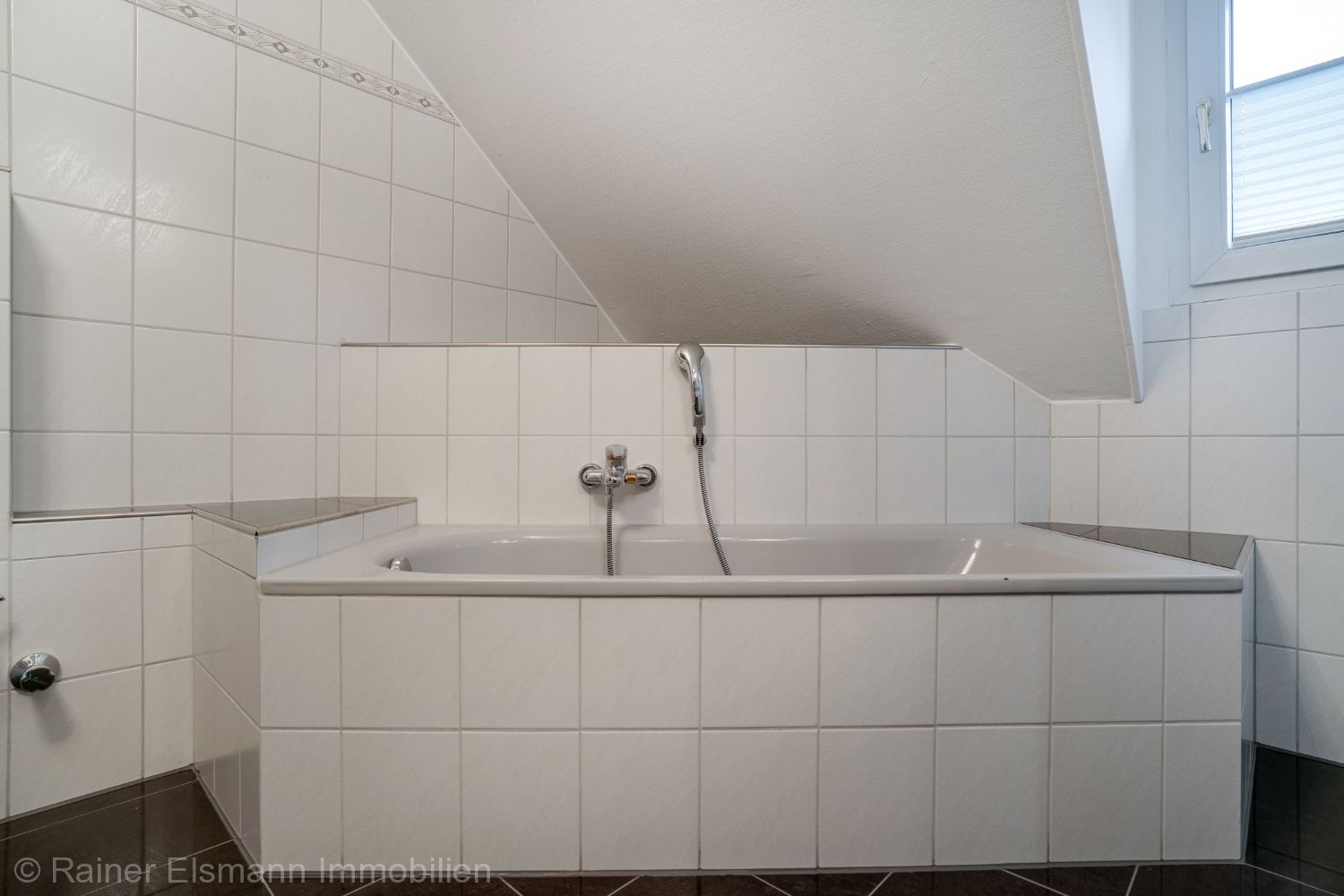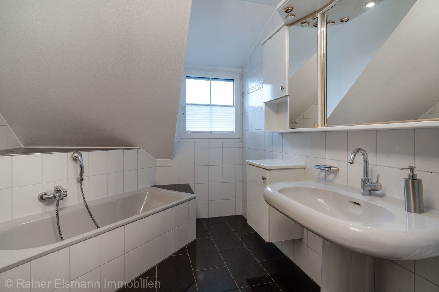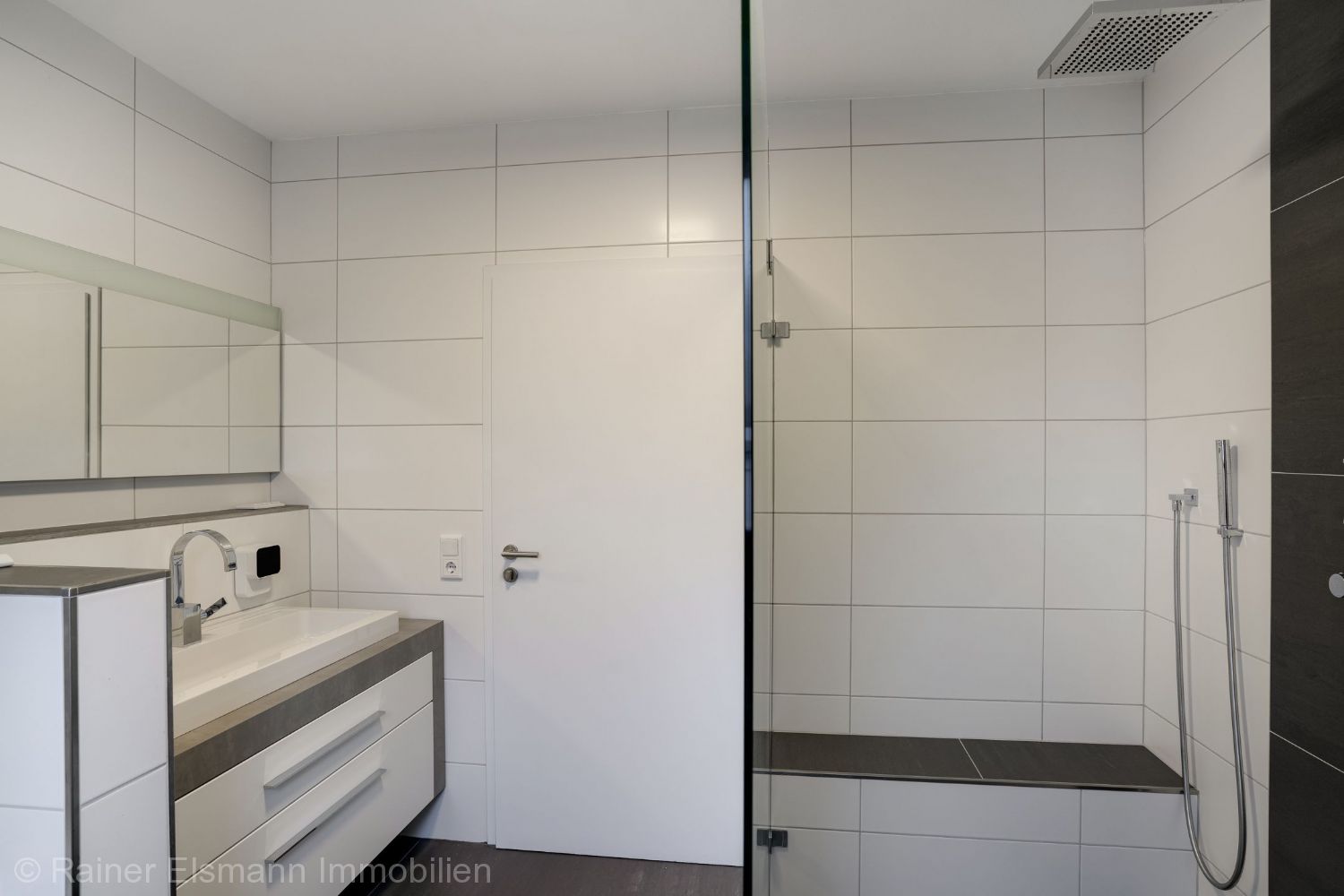 – Hauptbad mit Dusche, Badewanne, WC, Doppelwaschtisch, Designheizkörper