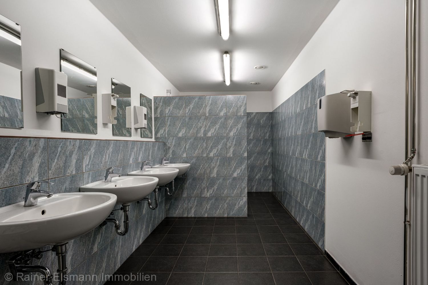 In der Halle befindet sich ein Technikraum und eine Toilette für die Mitarbeiter.