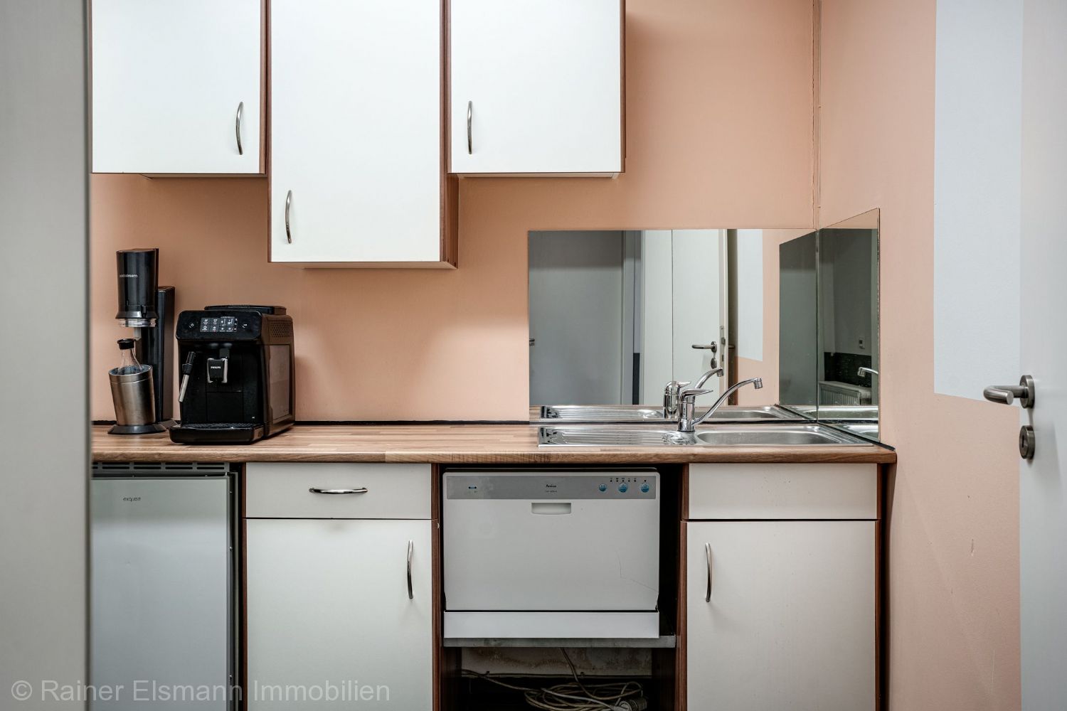 Erdgeschoss: Empfangsbereich, vier geräumige Büroräume, Küche, Pausenraum, Umkleideraum, Waschraum, WC-Anlagen